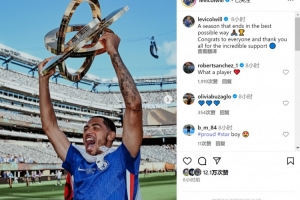 科尔维尔社媒晒出高举奖杯的照片,配文:“一个以最完美方式收官的赛季,祝贺所有人,感谢大家给予的非凡支持。”