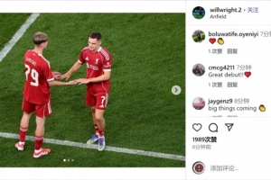体育资讯8月5日讯 利物浦新援威尔-赖特更新社媒动态,晒出在热身赛中替补出场的照片。