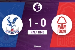 半场-水晶宫1-0领先诺丁汉森林 伊斯梅拉-萨尔破门格伊中柱