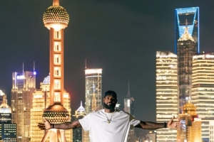 体育资讯9月16日讯 今日,摄影师Tristan Tamayo更新Instagram,晒出他在詹姆斯中国行上海站的酒店楼顶为詹姆斯拍摄的外滩风景合影照。