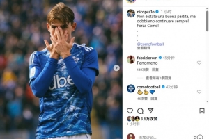 体育资讯9月28日讯 科莫中场尼科-帕斯在社交媒体发文,鼓励球队。