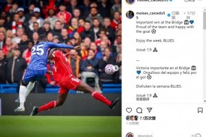 凯塞多社媒晒出比赛照片,并写道:“在斯坦福桥取得重要胜利,为球队感到骄傲,为进球感到开心。享受这个周末吧,蓝军球迷们。”