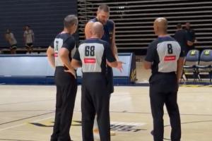 在训练赛结束后,尼科拉-约基奇花了至少10分钟与裁判们进行了交流和示范教学。