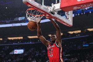 本场比赛,鹈鹕内线米西表现出色,进攻端很高效同时防守也很有威慑力,在20分钟的时间里,投篮6中5,拿到10分6篮板3助攻1抢断2盖帽的数据,正负值+18。