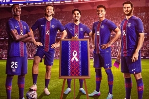 巴黎发布海报和公告,确认球员们将身穿特制球衣,参加主场对阵斯特拉斯堡的比赛,球衣胸前带有粉色丝带图案,这是全球抗击乳腺癌的象征。