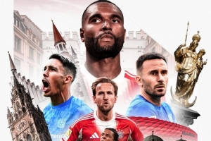 拜仁官方更新社媒动态,发布了为此役制作的海报,凯恩、奥利塞、若纳坦-塔出镜。