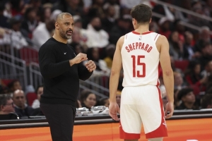 这个球能打到最后,我觉着当然快船也拼了,但是跟火箭对这场比赛没有什么针对性也有很大关系,是吧?你明显这球不上谢泼德火箭早赢了,第三节那时段上霍勒迪好很多,好像就是说领先一点之后他就老得把谢泼德换上去,然后让谢泼德练一练,是吧?他就是常规赛,常规赛其实没有那么强的 match up 的对位的针对性。乌