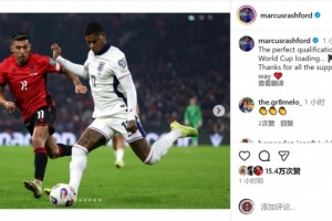 送出助攻!拉什福德社媒:完美的世预赛之旅,感谢大家的支持
